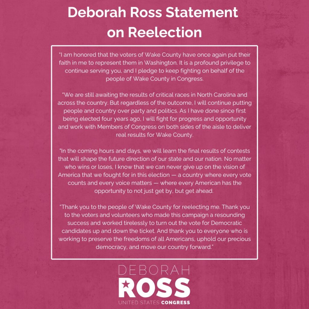 Thank you to the voters of Wake County for electing me to another term in Congress. It is a profound privilege and honor to continue serving you.